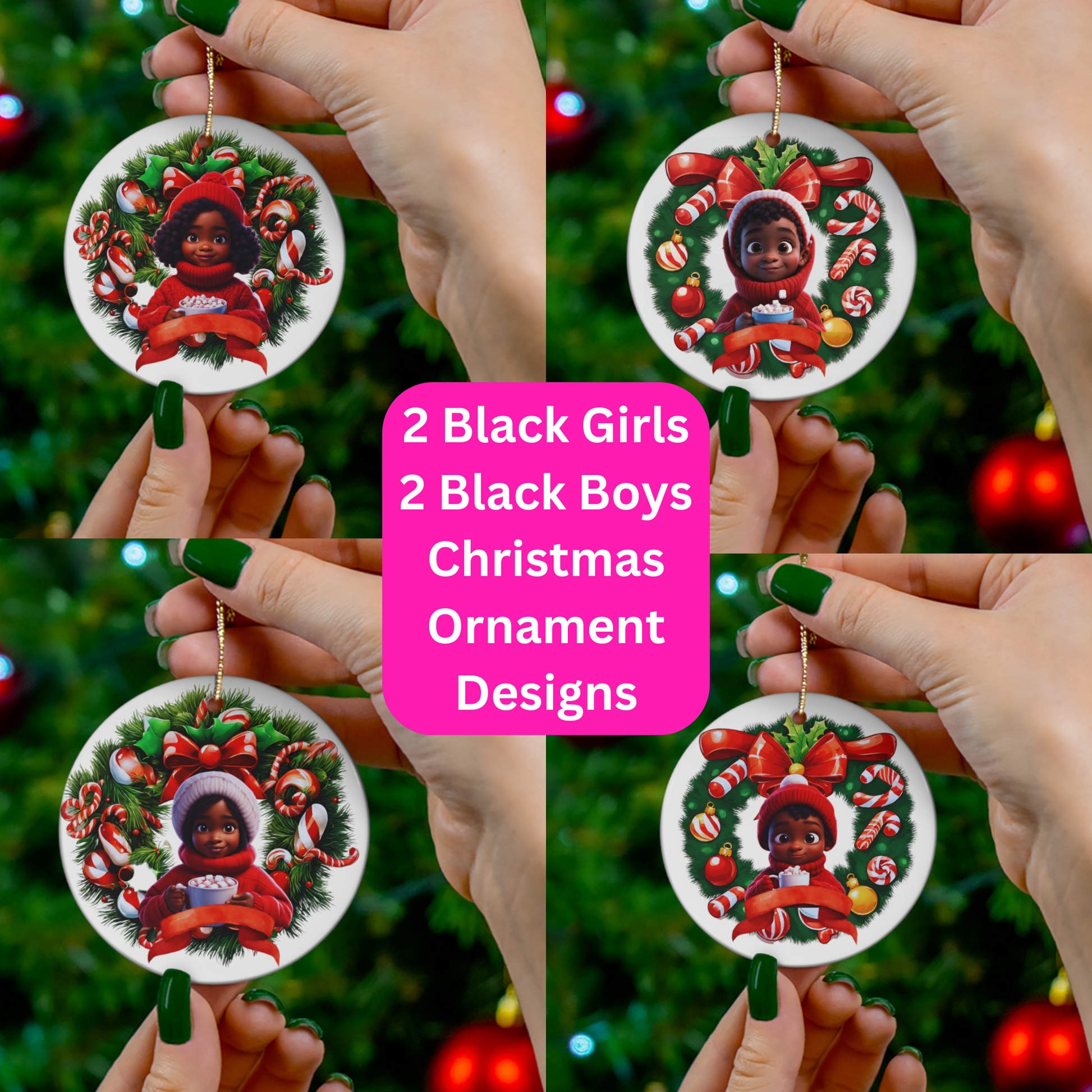 Black Kids Drinking Hot Chocolate Cartoon PNG Ai art, Christmas